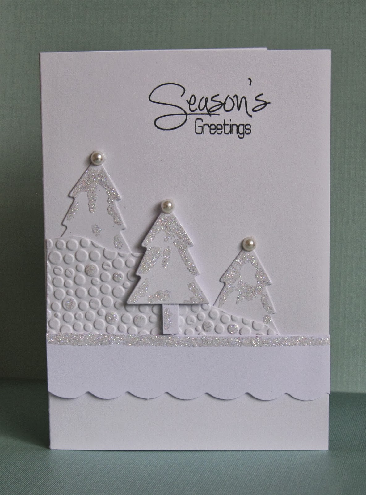 I then die cut the trees and positioned them on to the embossed piece of card and then decorated them with Glossy Accents and a sprinkling of Glamour Dust.